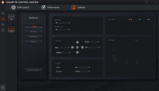Sidekick 軟體控制介面提供了跟實體按鈕一樣的功能