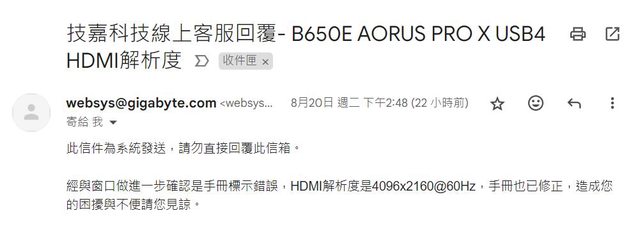 這裡就寫著支援 FRL 協議並最高到 4K120Hz,這比碩給的規格好太多了,但並沒有提到 到底是多少頻寬的 FRL 規格,這裡如果要深究,就只能聯繫星星客服取得更多資料。 最後看 G 心的的 B650E AORUS PRO X USB4 https://i.imgur.com/Pn8dNjC.jpg