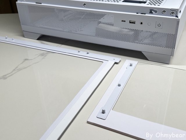 玻璃側板採用卡榫固定,側板皆可免工具拆裝,其中大片玻璃側板一側貼有泡棉緩衝墊。