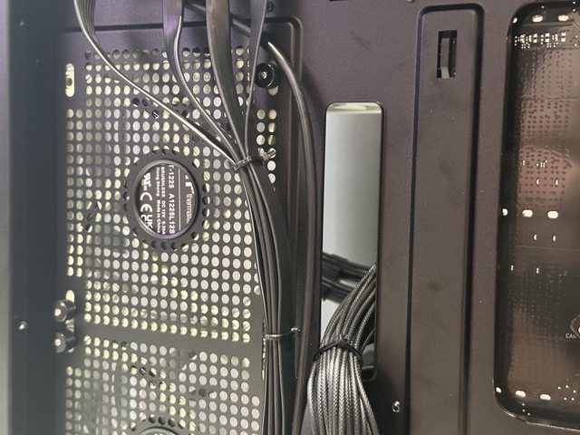 View 270後方空間算充裕,搭配TUF電源柔軟易彎折的壓紋線,整線沒有費太大的功夫。