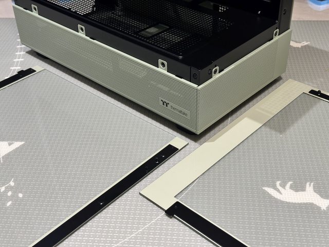 接著拆開側板...個人一般不會馬上就撕開玻璃側板保護膜,避免開箱中途發生意外,但