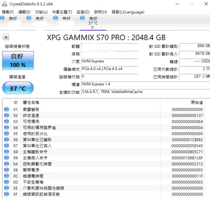 SSD (固態硬碟):威剛 XPG S70 PRO 2TB黑/Gen4/讀:7400/寫:6800/SMI主控/DRAM快取/?