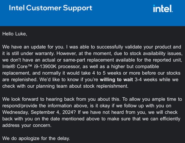 → newsnew: Intel:我們RMA就是乾脆 不過沒貨了 123.241.68.63 09/04 20:20