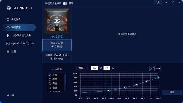 冷排風扇有多個轉速檔位可調,水泵的轉速則僅有全速或依PWM兩種。