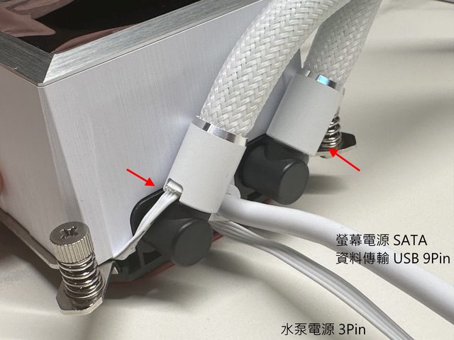 可將另外附的固定扣鎖上。個人則為了保持水冷管位置的彈性沒有安裝第三片固定扣。