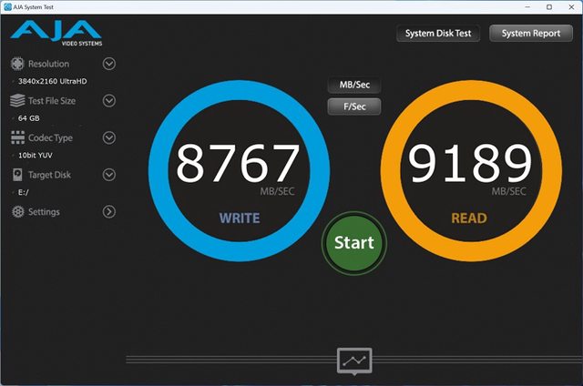 每秒達到8767MB/s讀取 9189MB/s寫入,相當快速