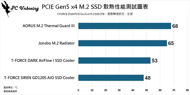 總結來說想在 PCIE Gen5 M.2 SSD 獲得最佳散熱效果就要用主動式散熱器比較好,但這
