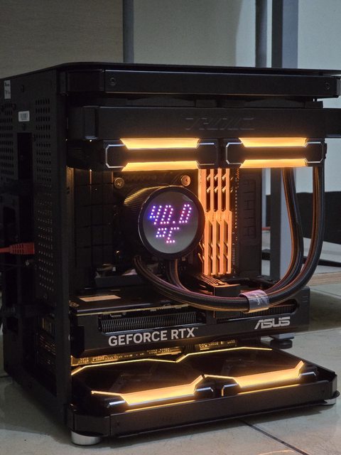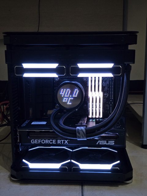 相較背面的凌亂正面就整潔多了,除了水冷管線以外看不到甚麼線材了,整體給我一種小