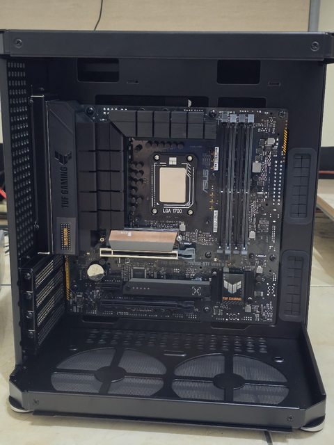 接下來就是先將主板裝上去,這次選的是TUF B760M-BTF D4,當我在選擇背插主板的時候