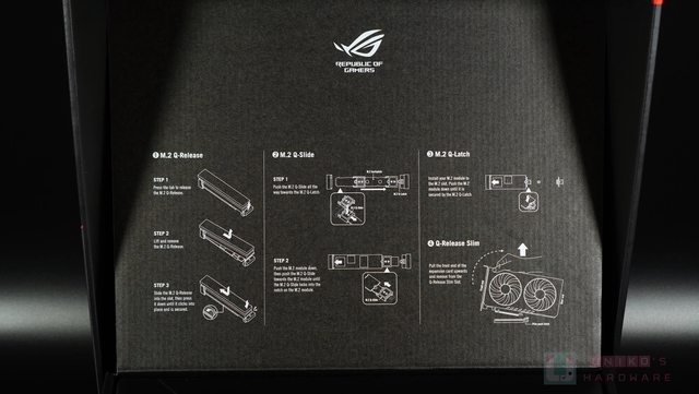 標出各大賣點。這一代特色終於點到 M.2 Q-RELEASE 設計,至於華碩終極的 M.2 方案,光