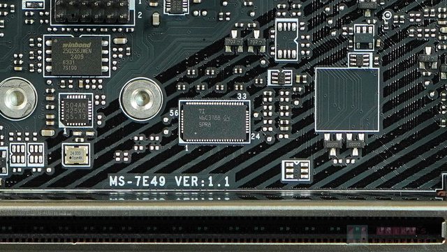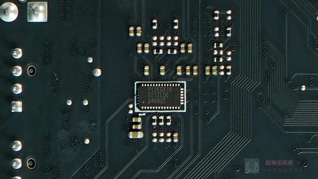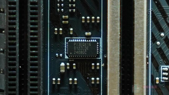 ‧ 在 PCI_E3 插槽上方,PCB 背後有一顆 DIODES PI3EQX16021,正面有一顆 PI3EQX1601