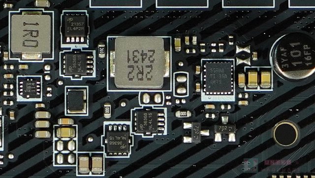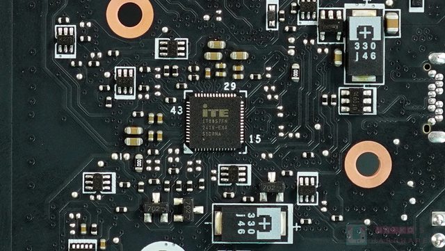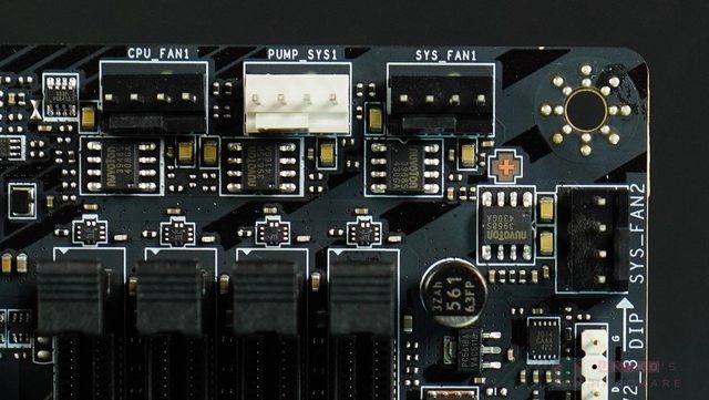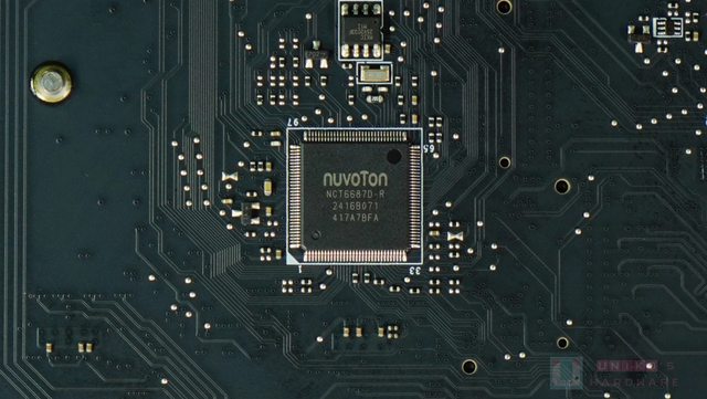 ‧ NUVOTON NCT6687D-R SUPER I/O 晶片位於 PCB 背面,管理風扇 / 電壓 / 溫度等和開