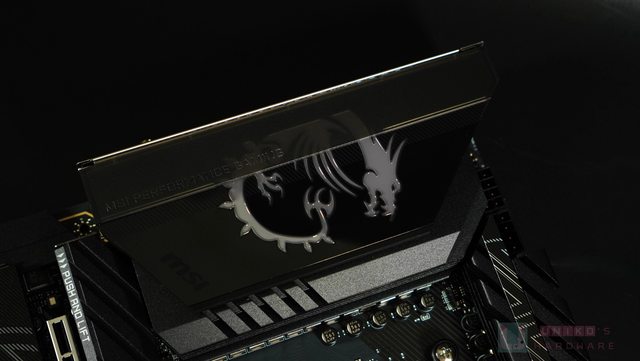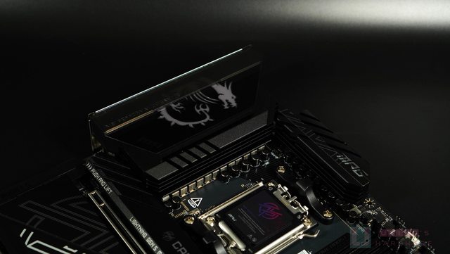 板,藏住龍紋的一部分,並刻上了 MPG 全稱 MSI PERFORMANCE GAMING。