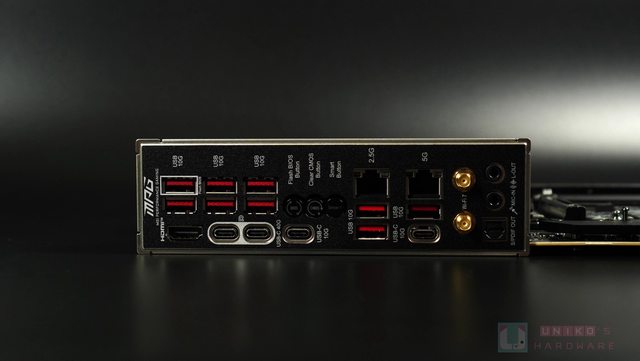 網路連接是微星今代大推的重點,CARBON 提供雙有線網路 RJ45 (2.5G 與 5G),又採用支