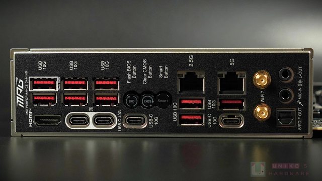 UBS 40 Gbps、Wi-Fi 7 、及 5 Gbps LAN 都是 MPG 系列的重點,微星也加了標示,讓 AMD