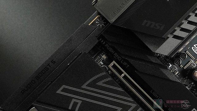 BON 的字樣,與下方 MSI PERFORMANCE GAMING、I/O 裝甲做出整體呼應,至於最左邊的音