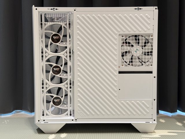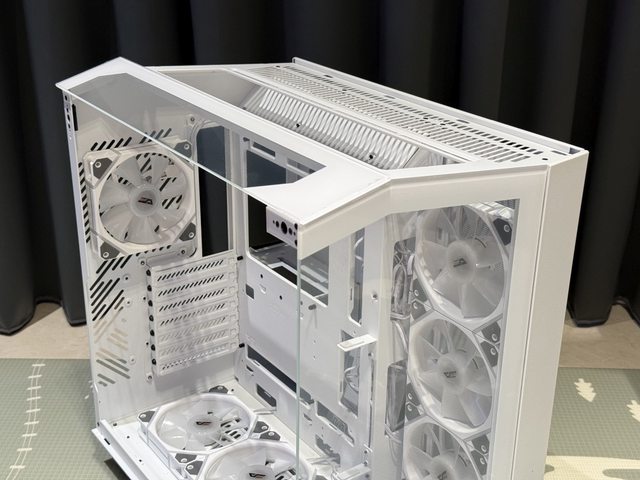 為雙艙架構三面玻璃全景機殼,有7風扇的限量版及4風扇的一般版,目前採首發直接送3