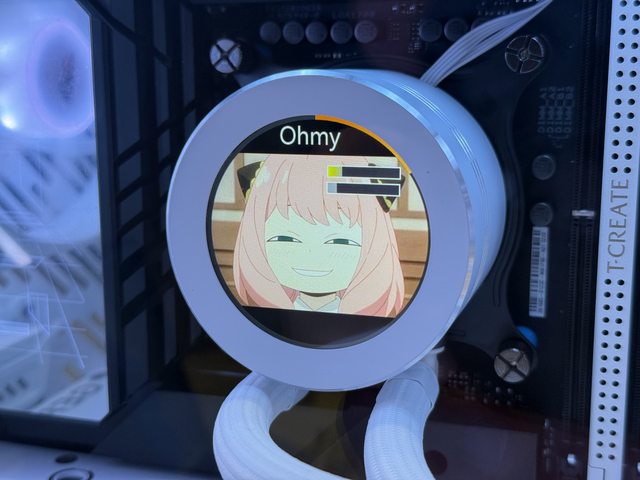 接著通電開機!從水冷螢幕預設的顯示方向來看的確大飛建議水冷管在冷頭右側。