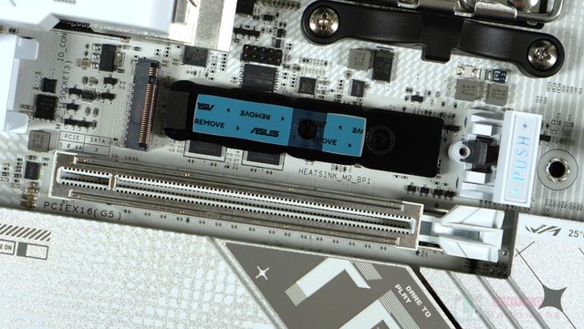 計、加入布標裝飾的快拆式 M.2 散熱器、以及為 PCI-E 5.0 M.2 插槽加入背板散熱設計。