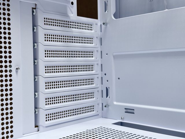 先馬SAK736相對其他平價海景機殼的優勢之一是PCIE槽全數採用可重複使用檔板,值得加