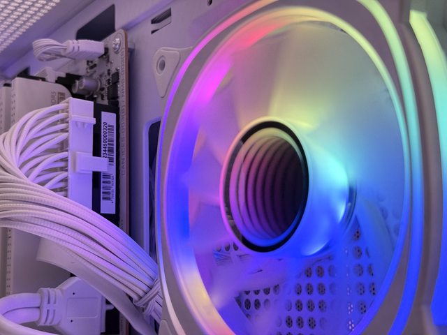配置2顆120mm反向扇葉及1顆120mm正向扇葉ARGB風扇,依外觀判斷軸承帶有無限鏡燈效。