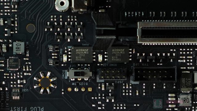 ‧ 雙 BIOS 晶片都是 WINBOND W25Q256JW 32MB 版本,各自擁有 1 顆 ROM_LED。