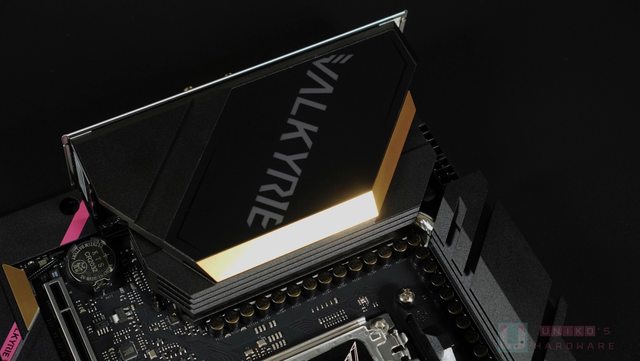 會注意到那條桃紅色的寬線條跨越四塊散熱器,線條中央還以連續的 VALKYRIE 黑色小字做