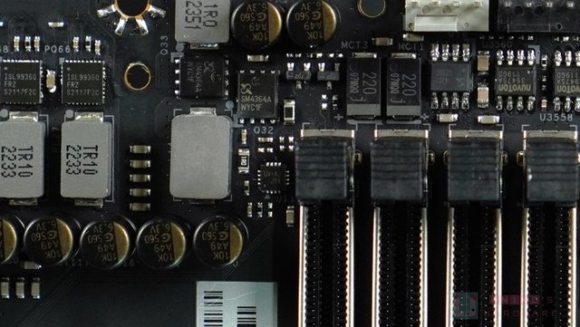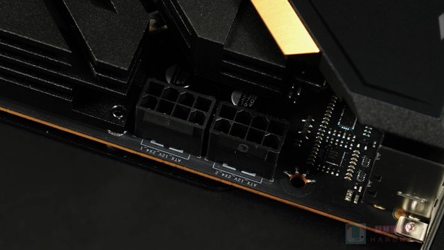 整個供電散熱器非常巨大,表面甚至延伸至 I/O 擋板,作為 I/O 裝甲。全金屬的設計,加