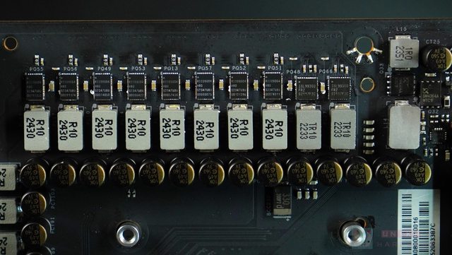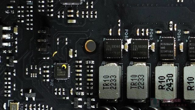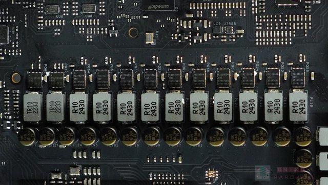 供電電感在電流規格屬 36A 版本,比以往的 34A 版更強,主要是 22 組 110A SPS 的設計