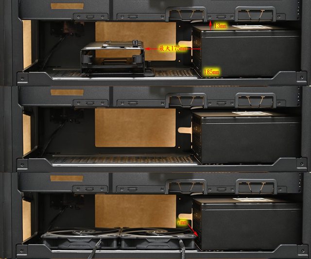 電源艙隔板風扇安裝空間:3個120mm(預裝2個120mm P12R PWM反向風扇)