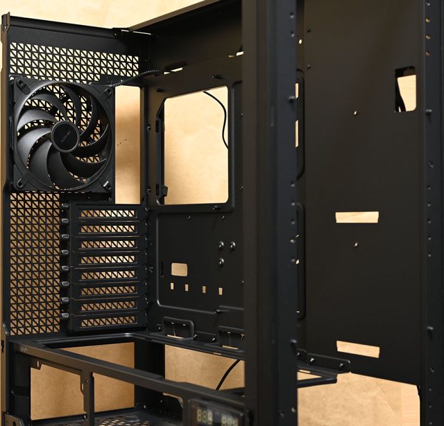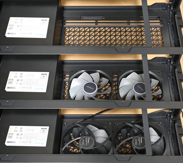 Tranquil PWM風扇,電源艙頂部預裝2個120mm P12R PWM反向風扇,後方預裝1個140mm