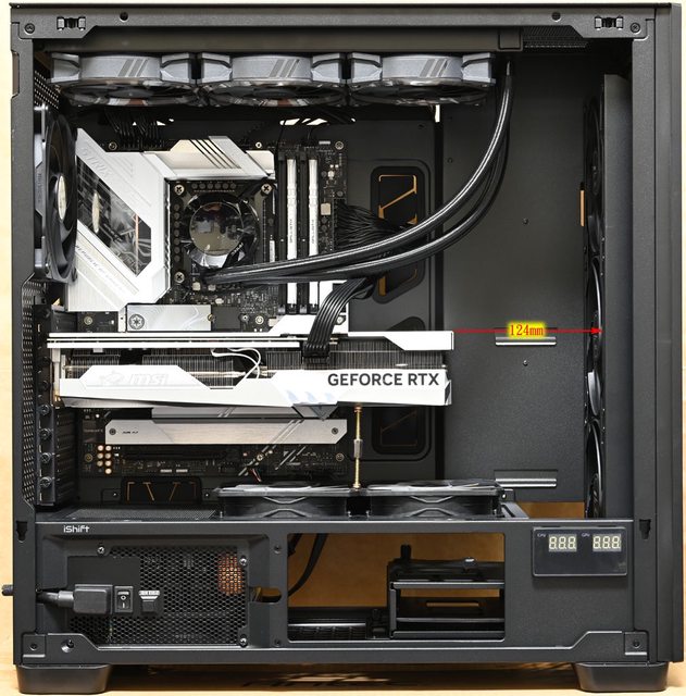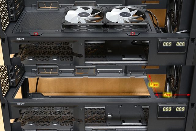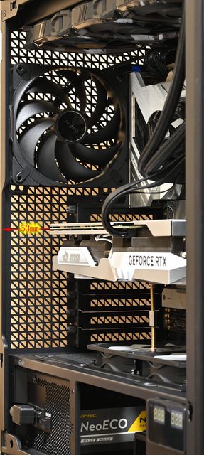 可裝140mm,8個標準擴充槽之間沒有支架,不用擔心會阻擋介面卡連接埠。擴充槽側邊有