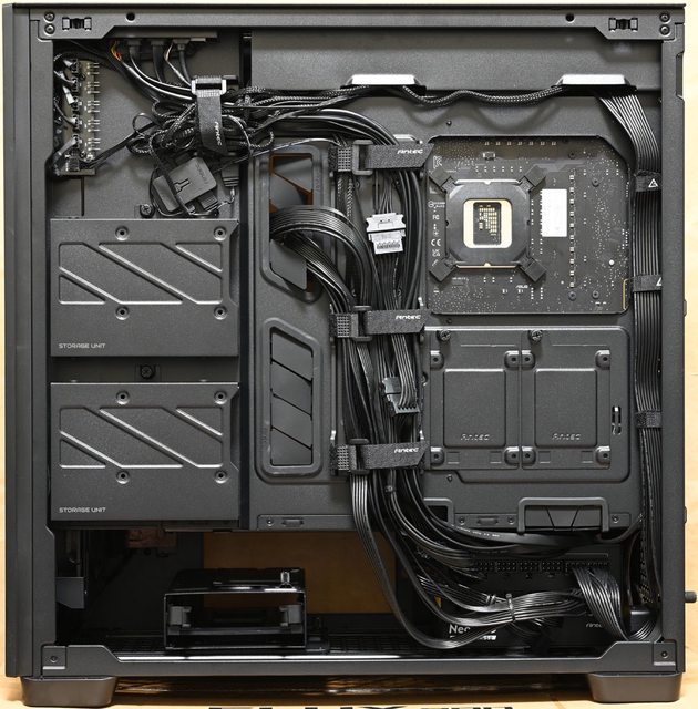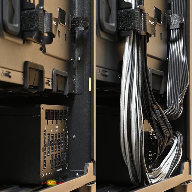 只能擇一安裝420mm水冷排),其中一側有穿線開口及線路固定架