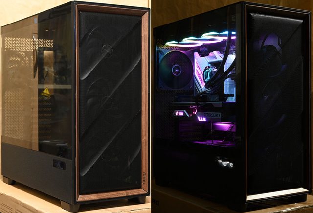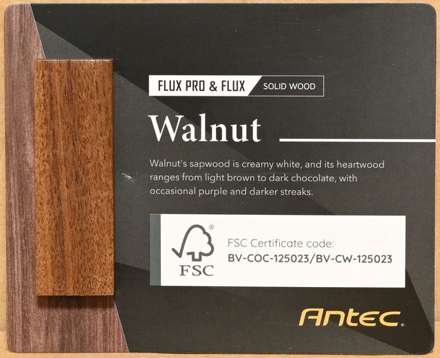 ▼前方網孔板邊緣外框使用胡桃木製作,右下有ANTEC商標