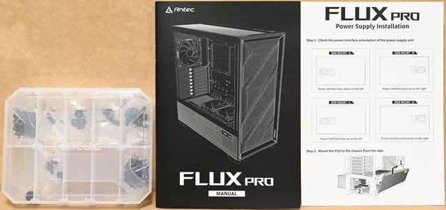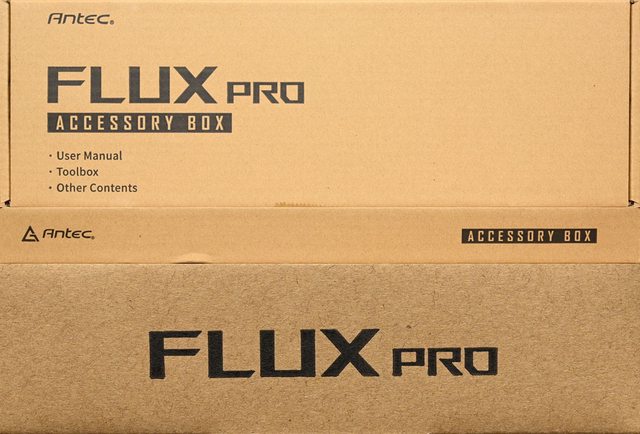 ▼說明書及隨附配件另外裝在紙盒內,紙盒印上ANTEC商標/FLUX PRO標誌/ACCESSORY