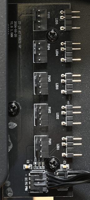 ○燈光風扇集線板提供5個ARGB 3pin插針及5個PWM 4pin插針,燈光能與支援ARGB主機板