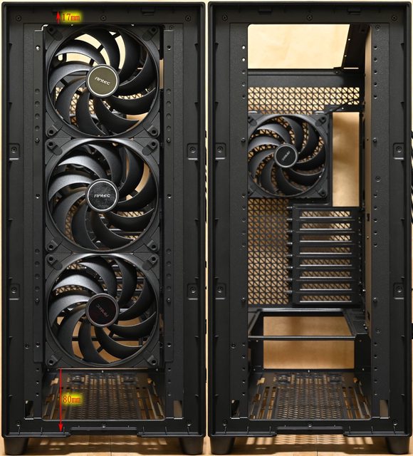 前方風扇安裝空間:3個120mm/140mm(預裝3個140mm Tranquil PWM風扇)