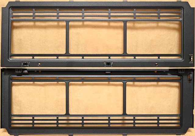 ▼電源艙延長電源線三角形孔洞網狀通風蓋板的兩側使用手轉螺絲固定