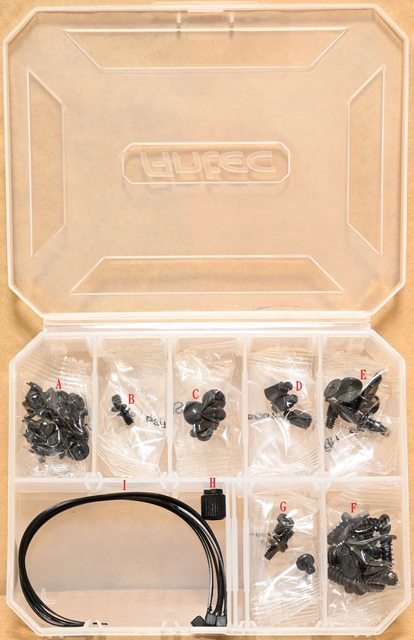 絲(C)、主機板銅柱(D)、固定框專用3.5吋裝置螺絲(E)、風扇螺絲(F)、電源艙頂部網孔