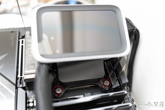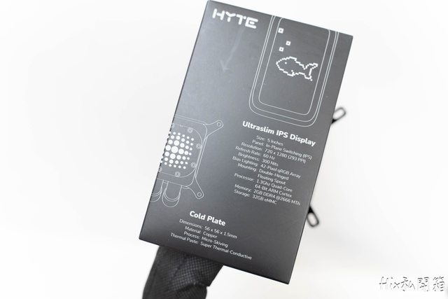 分別是冷排上的HYTE廠徽以及冷頭螢幕背面