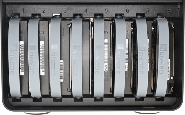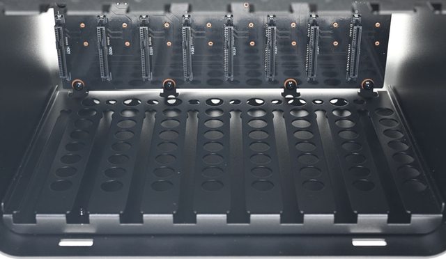 ○可裝8個3.5吋裝置加1個2.5吋裝置,3.5吋裝置採無框架抽取式設計