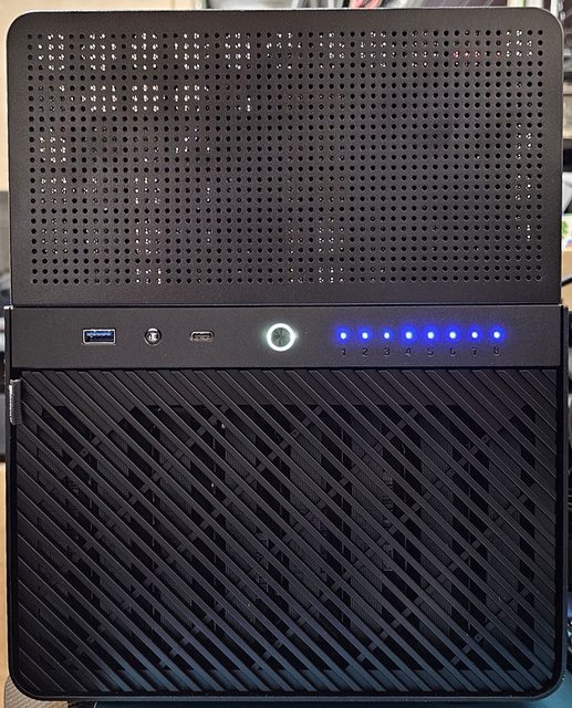 極耳機/麥克風3.5mm插孔、USB3.2 Type-C、電源按鍵/指示燈、8個硬碟指示燈