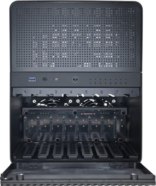 ●可裝8個3.5吋裝置加1個2.5吋裝置,3.5吋裝置採無框架抽取式設計