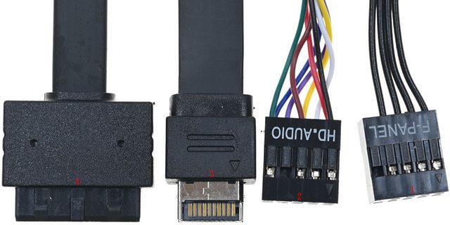 ▼機殼連接線組,1為電源開關/電源指示燈一體式接頭,2為4極耳機麥克風插座接頭,3