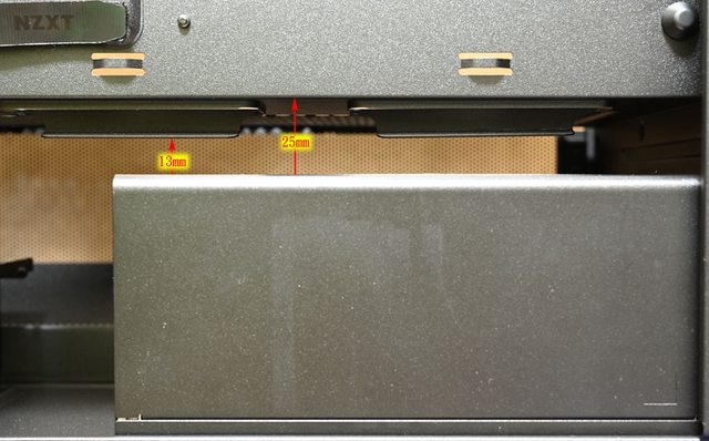 ▼電源供應器與電源艙頂部距離25mm(頂部)/13mm(開口彎折處)