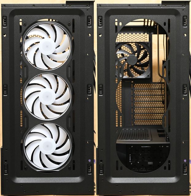 前方風扇安裝空間:3個120mm或2個140mm(預裝1個機殼版F360 RGB Core單框3扇葉發光風