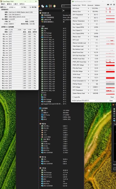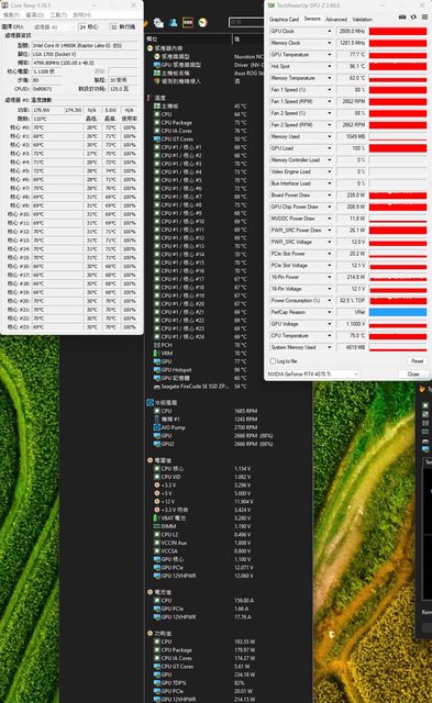 ▼CPU+GPU高負載30分鐘後Core Temp、GPU-Z感測器、AIDA64感測器頁面