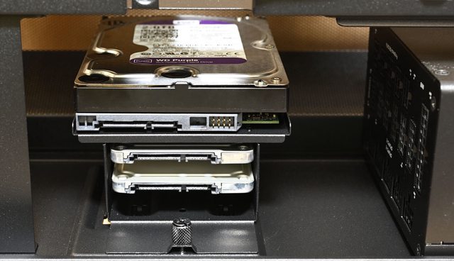 ●底部3.5吋/2.5吋活動固定架具備兩段安裝位置,提供1個3.5吋及2個2.5吋安裝位置