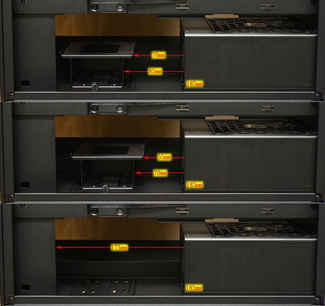 電源供應器時,電源供應器與固定架距離分別是70mm(頂端)/85mm(側面)及55mm(頂端