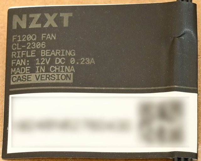 ▼機殼版F120Q風扇於電源線路上的標籤,有商標、名稱、型號、軸承類型、風扇電壓/電